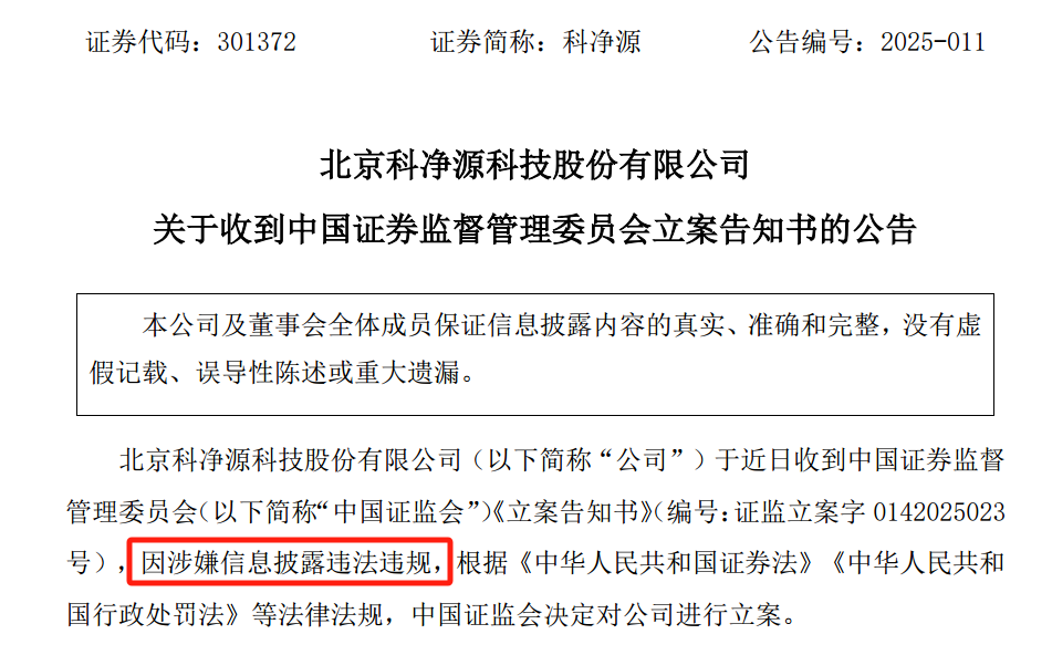 【导读】科净源因涉嫌信息披露违法违规被中国证监会立案